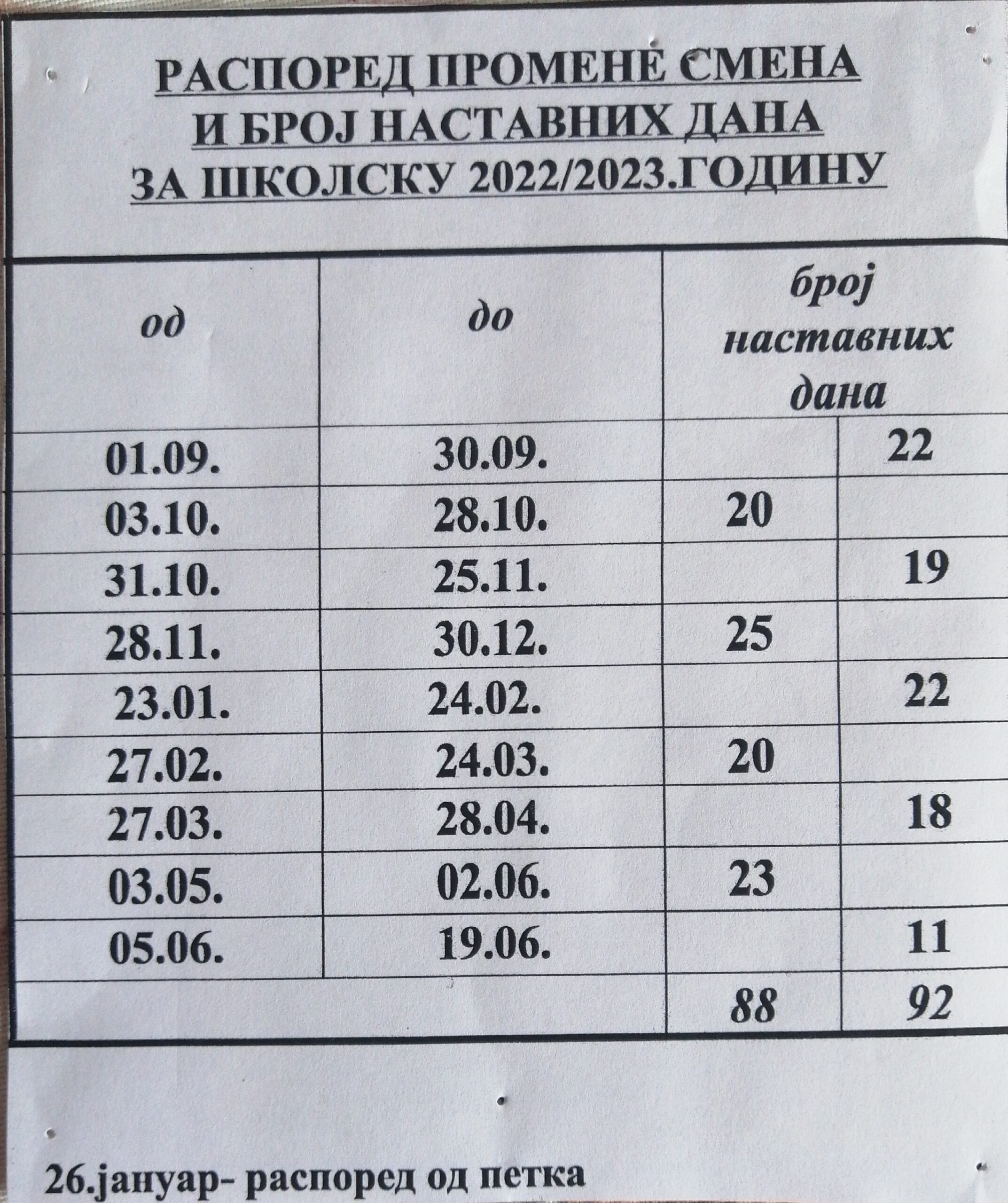 РАСПОРЕД ПРОМЕНЕ СМЕНА ЗА ШКОЛСКУ 2021/2022. ГОДИНУ