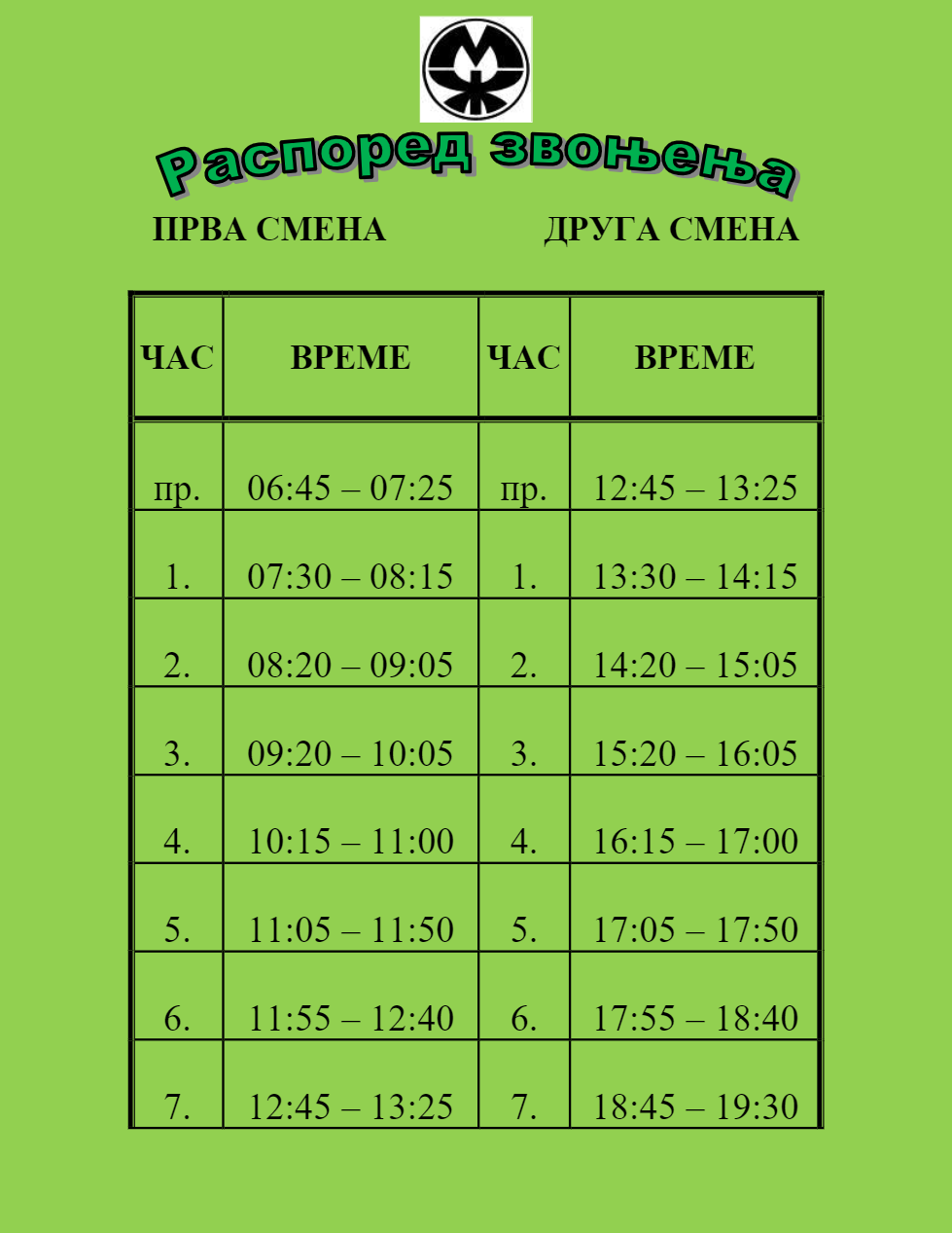распоред звона